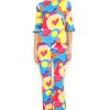 Pantalón de algodón flare de algodon estampado multicolor y cinturilla elástica. Talla normal. Tallas: 36/S/M y 40/L/XL. Lavar a maquina máx 30ºC . No usar lejía/blanqueador. No usar secadora. Planchado máximo 110ºC. Composición: 95% poliester y 5% elastano.
