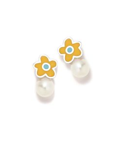 Agatha Ruiz de la Prada Jeweler Yellow Flower Pearl Stud Earrings
