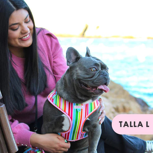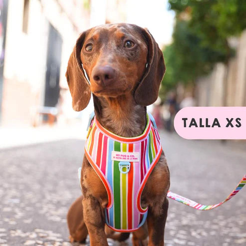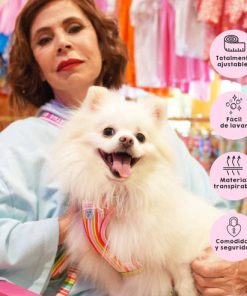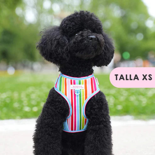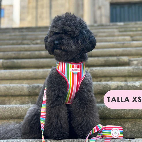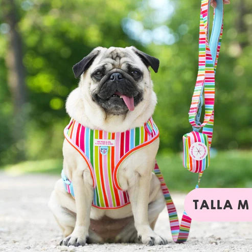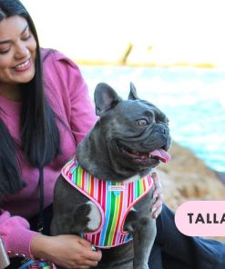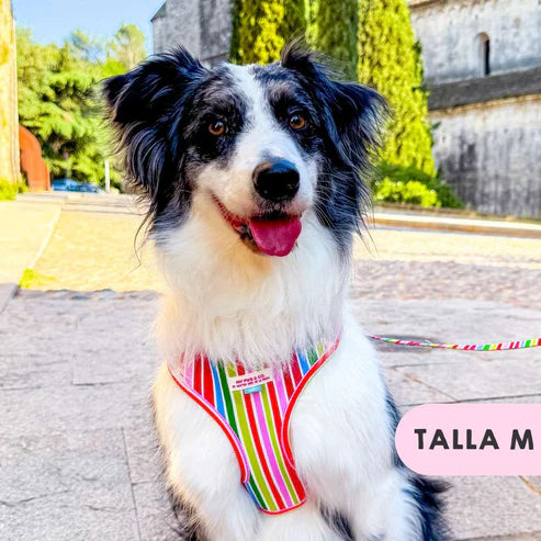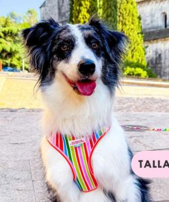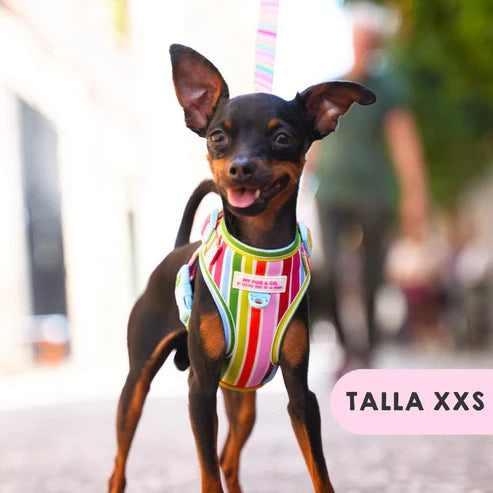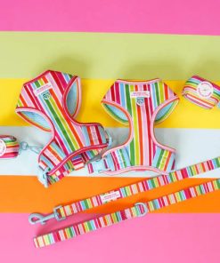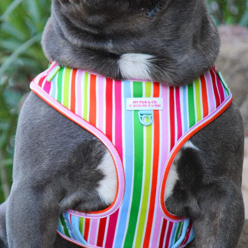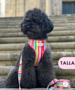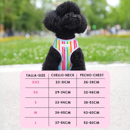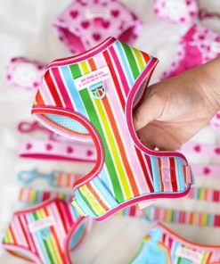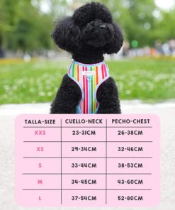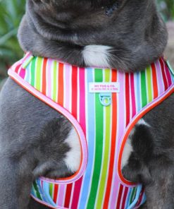 Adjustable harness at both the neck and chest, comfortably fitting dogs of all sizes. Easy to wash. Neoprene fabric on the outside. Breathable, quick-drying mesh on the inside. Metal D-ring on the back for leash attachment and on the front for ID tags. Reflective strips on the sides of the harness.