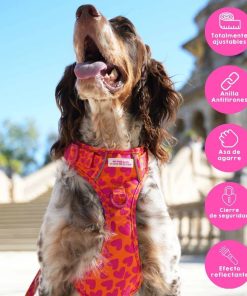 Anillas en D en el pecho y la espalda para anclar la correa.
