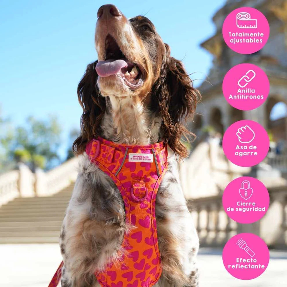 Hebilla de seguridad bloqueable en el cuello para evitar que el arnés pase por encima de la cabeza de su perro.