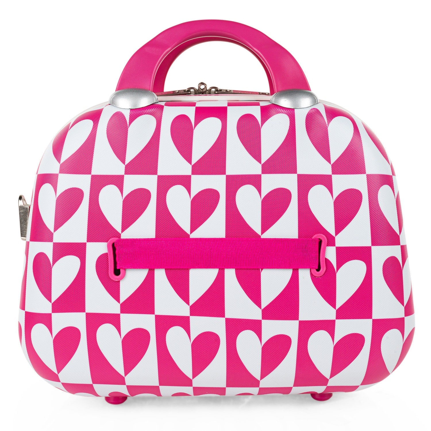 White hard toiletry bag with a different print. Dimensions: 35 x 26 x 17 cm. Weight: 1.20 kg. Capacity: 15.5 L. Zipper closure with double slider Double handle Interior divider with mirror Heart-shaped cursors Measurements: 35x26x18 Weight: 1.2 Kg. Material: ABS/Polycarbonate Nylon ONLY FOR SHIPMENTS IN EUROPE