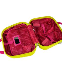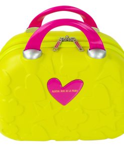 Fuchsia-colored hard toiletry bag. Dimensions: 35 x 26 x 18 cm. Weight: 1.15 kg. Capacity: 16 liters.Zipper closure with double slider Double handle Interior divider with mirror Heart-shaped cursors Measurements: 35x26x18 Weight: 1.2 Kg. Material: ABS/Polycarbonate Nylon ONLY FOR SHIPMENTS IN EUROPE