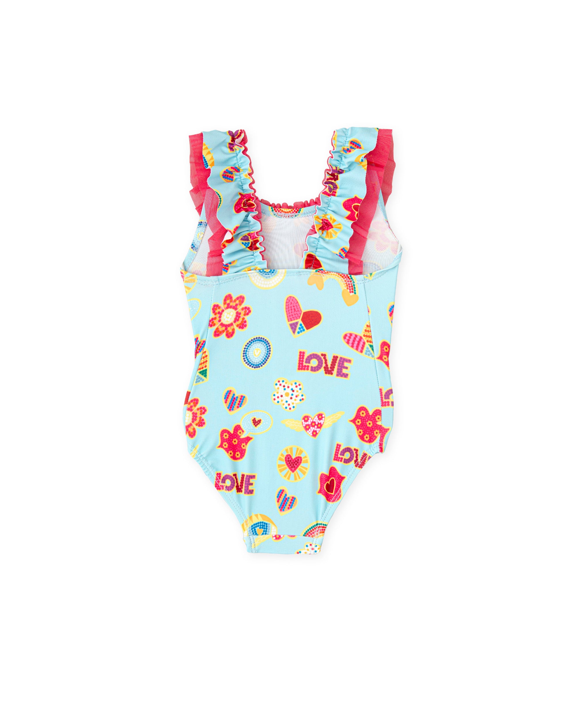 Blue printed swimsuit with colorful icons. Sizing from 24M to 8A. Machine washable, but not exceeding 30°C. Not suitable for bleach or other chlorine bleach. Not suitable for dryers. Not suitable for ironing. This garment cannot be dry cleaned. Like all our garments, it has obtained the AITEX quality certificate. COMPOSITION: OUTER: POLYAMIDE 90% ELASTANE 10% LINING: POLYAMIDE 93% ELASTANE 7%