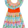 Red round-neck, short-sleeved dress with a white flower and a white floral print skirt. HAVANA collection. Sizes range from 04 to 14. Machine wash at a maximum of 30°C. Short spin cycle. Do not bleach. Iron at a maximum of 150°C. Do not dry clean. Do not tumble dry. Composition: 96% COTTON, 4% SPANDEX.