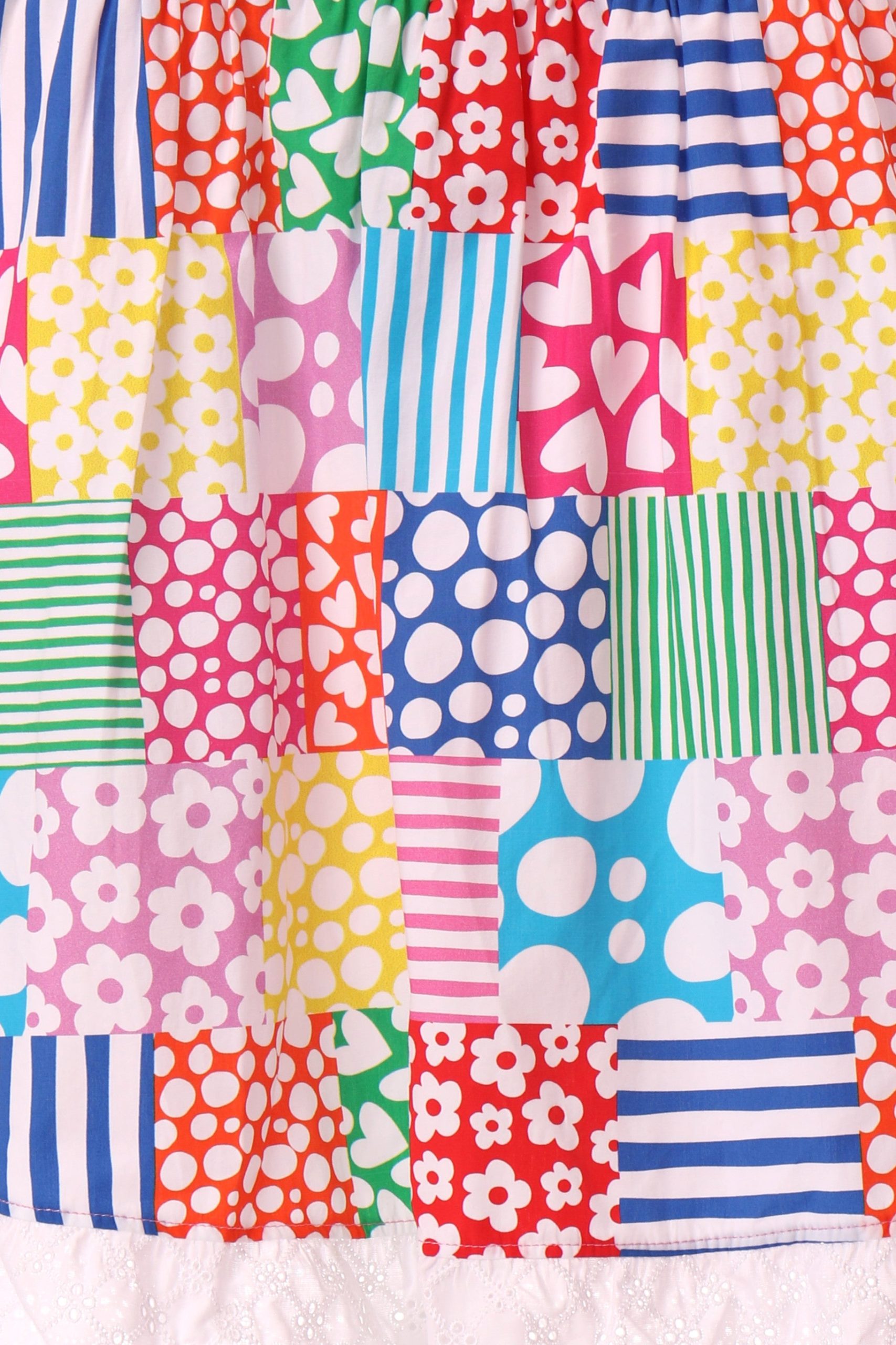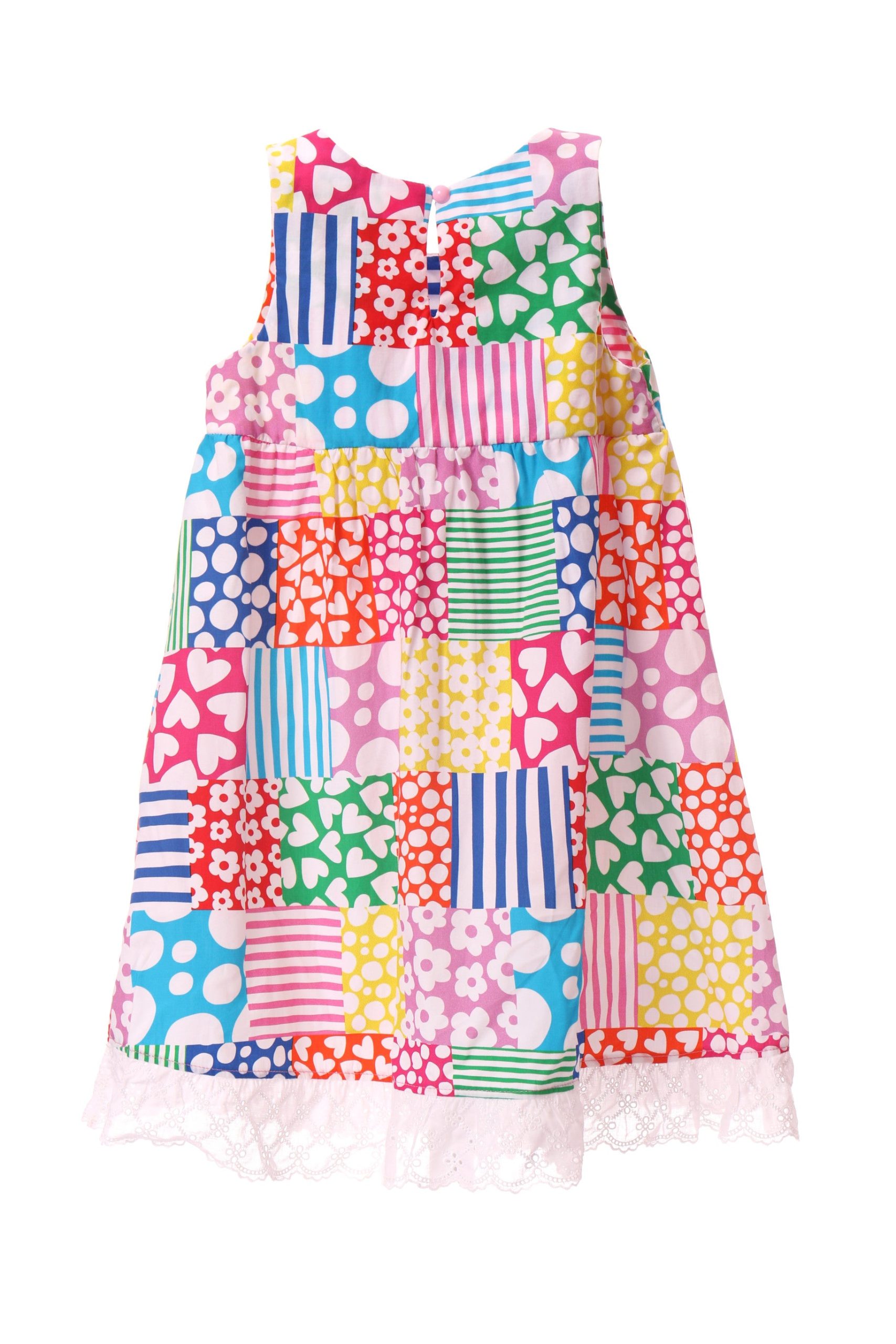 Round-neck, sleeveless dress with a multicolored patchwork print. COPENHAGEN collection. Sizes range from 04 to 14. Machine wash at a maximum of 30°C. Short spin cycle. Do not bleach. Iron at a maximum of 150°C. Do not dry clean. Do not tumble dry. Composition: 96% COTTON, 4% SPANDEX.