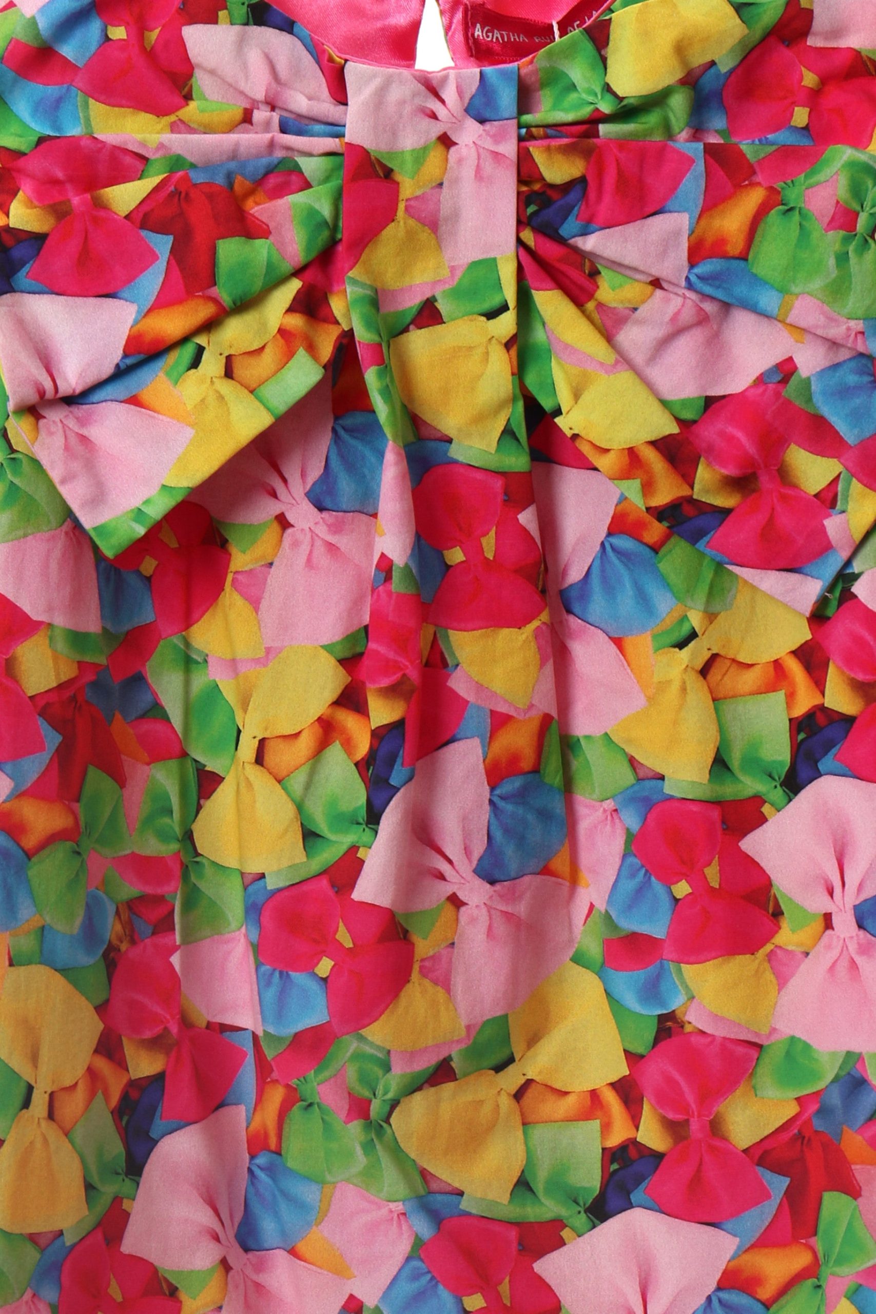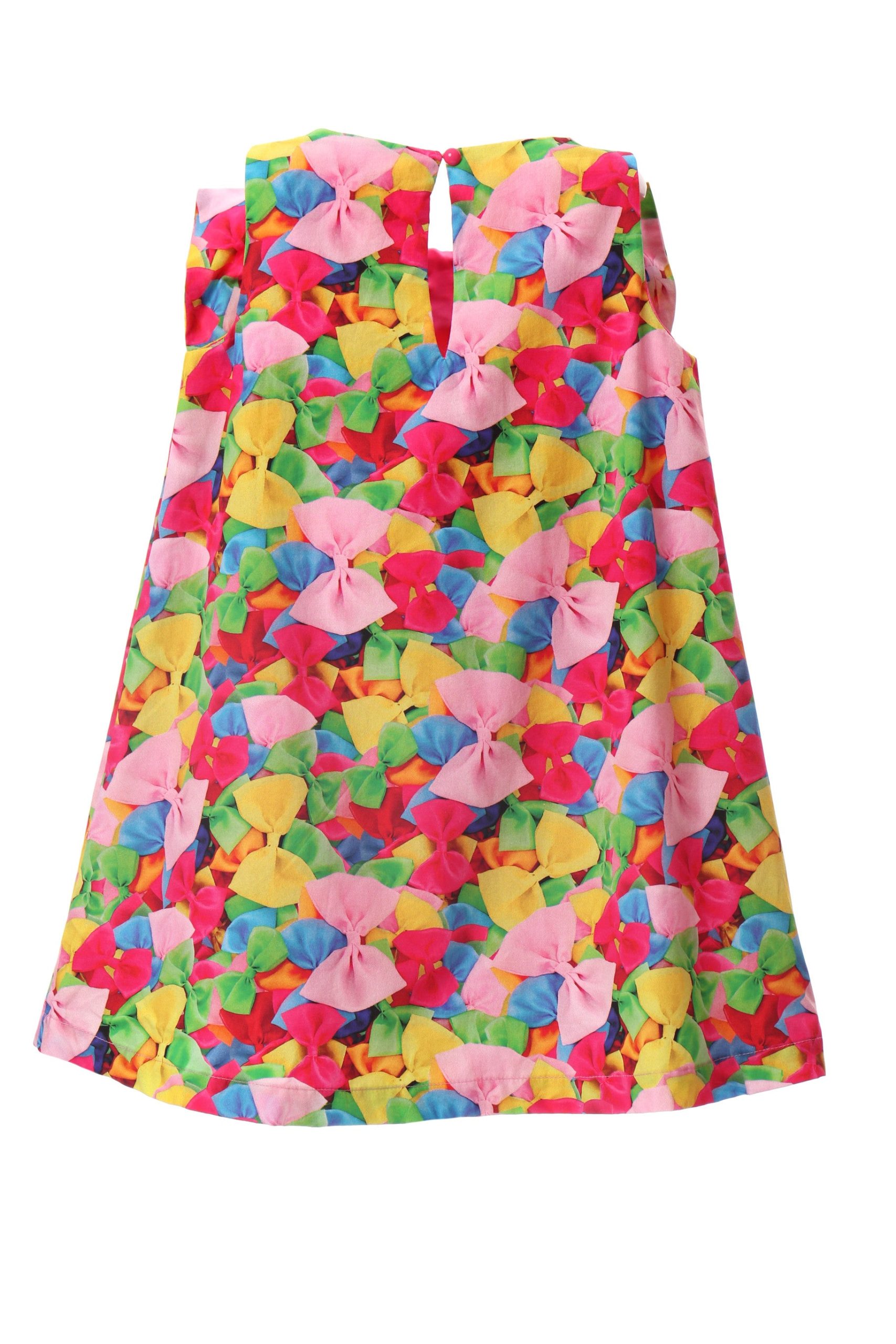 Sleeveless round-neck dress with a photographic print of colorful bows. VENICE collection. Sizes range from 04 to 14. Machine wash at a maximum of 30°C. Short spin cycle. Do not bleach. Iron at a maximum of 150°C. Do not dry clean. Do not tumble dry. Composition: 100% COTTON.
