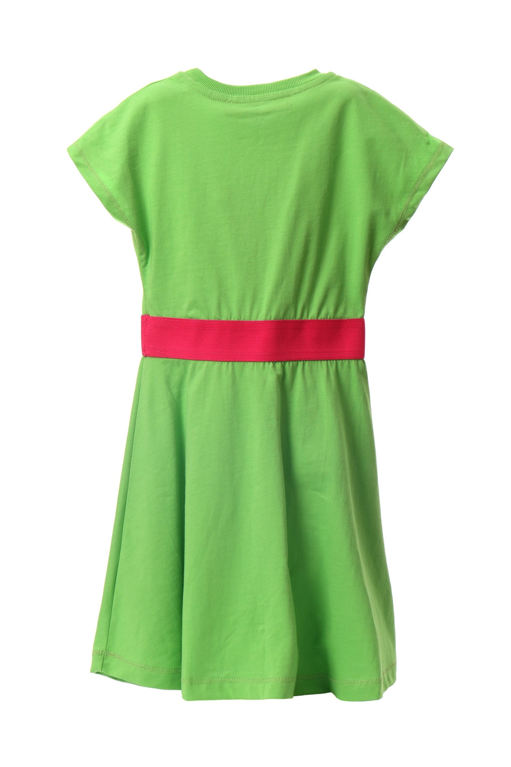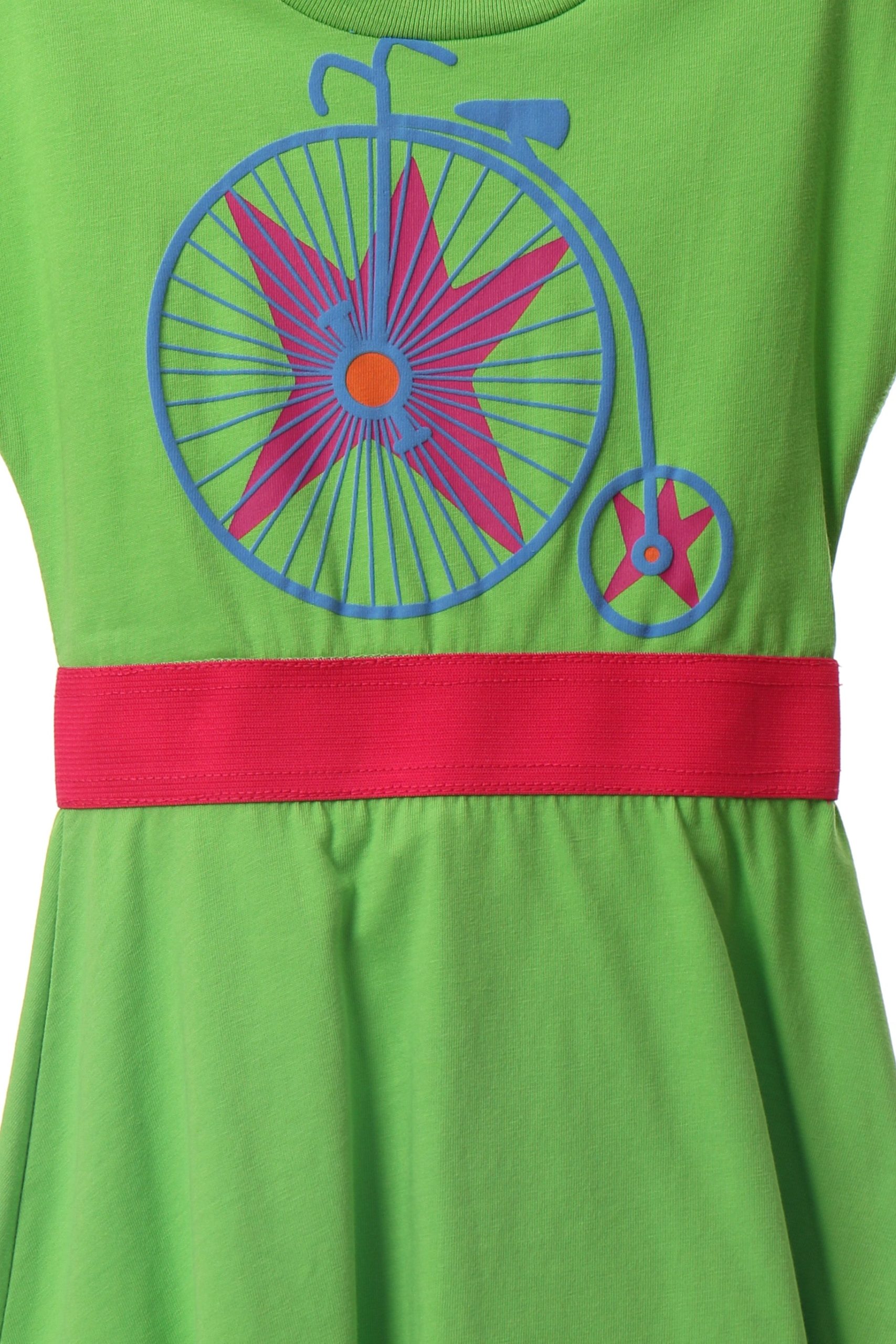 Green sleeveless dress with a bicycle. AMSTERDAM collection. Sizes range from 04 to 14. Machine wash at a maximum of 30°C. Short spin cycle. Do not bleach. Iron at a maximum of 150°C. Do not dry clean. Do not tumble dry. Composition: 100% COTTON.