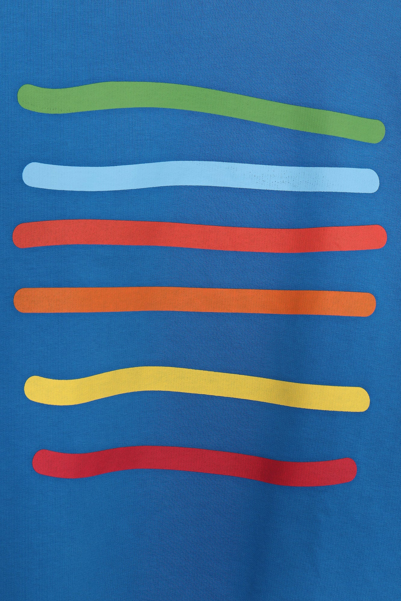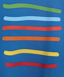 Blue crew-neck, long-sleeved sweatshirt with colorful horizontal stripes down the center. Regular fit. Sizes: 38 to 44. Machine wash at a maximum temperature of 30°C. Do not bleach. Do not tumble dry. Maximum ironing possible. 100% COTTON.