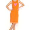 Orange circle skirt with a yellow floral print and elastic waistband. Sizes 36 to 44. Machine wash at a maximum temperature of 30°C. Do not bleach. Do not tumble dry. Iron at a maximum temperature of 110°C. 96% COTTON; 4% SPANDEX