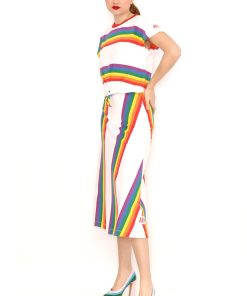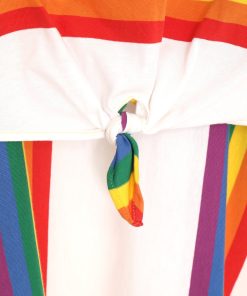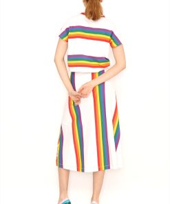 White round-neck sleeveless T-shirt with horizontal colored stripes and a low knot at the front. Regular fit. Sizes: 36 to 44. Machine wash at a maximum temperature of 30°C. Do not bleach. Do not tumble dry. Iron at a maximum temperature of 110°C. 100% cotton.