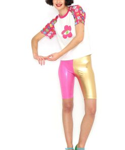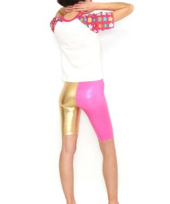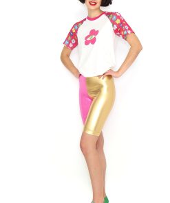 White crew-neck T-shirt with a flower print in the center and fuchsia mesh sleeves. Regular fit. Sizes: 36 to 44. Model’s height: 1’80 cm. Photo size: 38. Machine wash max 30°C. Do not bleach. Do not tumble dry. Iron max 110°C. 100% COTTON.