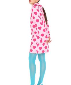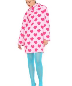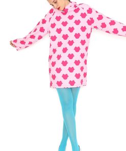 Pink dress with a loose neck and long sleeves in pink with a fuchsia kisses print. Sizes range from 36 to 44. Machine wash at a maximum of 30°C. Short spin cycle. Do not bleach. Iron at a maximum of 150°C. Do not dry clean. Do not tumble dry. Composition: 88% POLYESTER; 12% SPANDEX