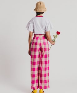 Women’s gingham pleated trousers in fuchsia. Large size. Machine wash max 30°C. Do not bleach. Do not tumble dry. Iron inside out, max 90°C. COMPOSITION: 92% POLYESTER 8% POLYURETHANE.