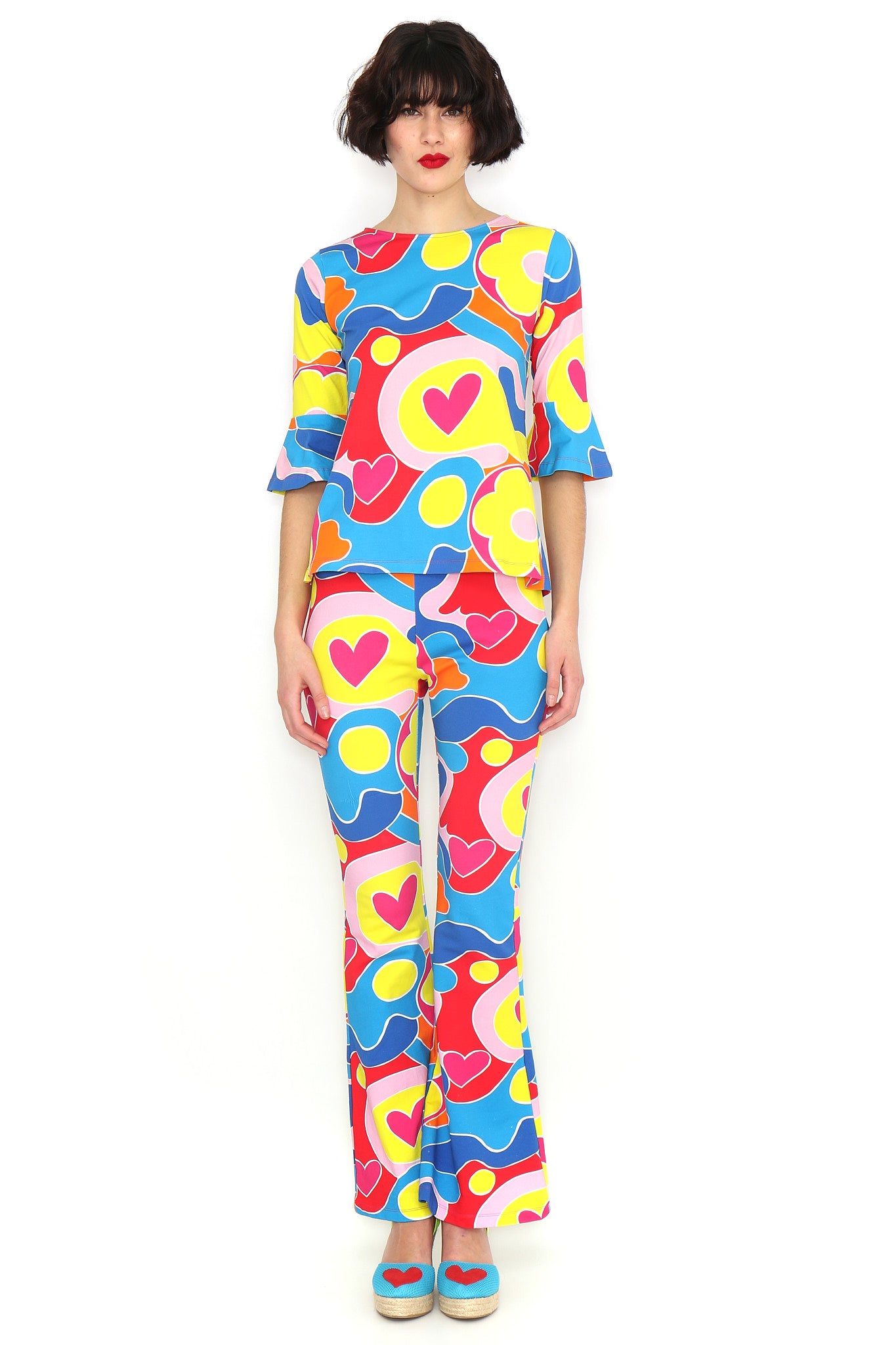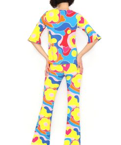 Printed crew neck T-shirt with French sleeves and ruffle trim. Regular fit. Sizes: 36 to 44. Model’s height: 1’80 cm. Photo size: 38. Machine wash at a maximum temperature of 30°C. Do not bleach. Do not tumble dry. Iron at a maximum temperature of 110°C. 100% cotton.