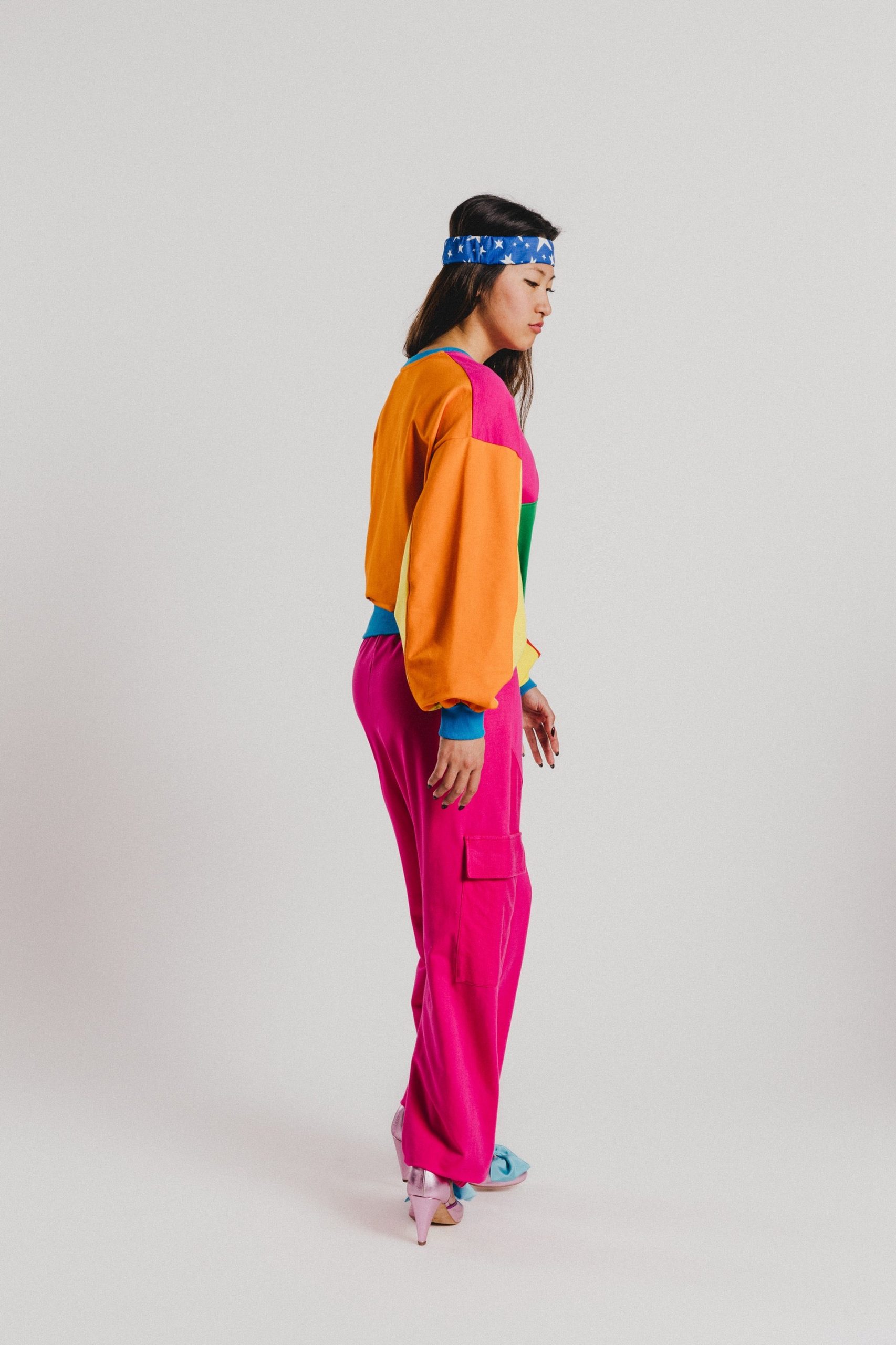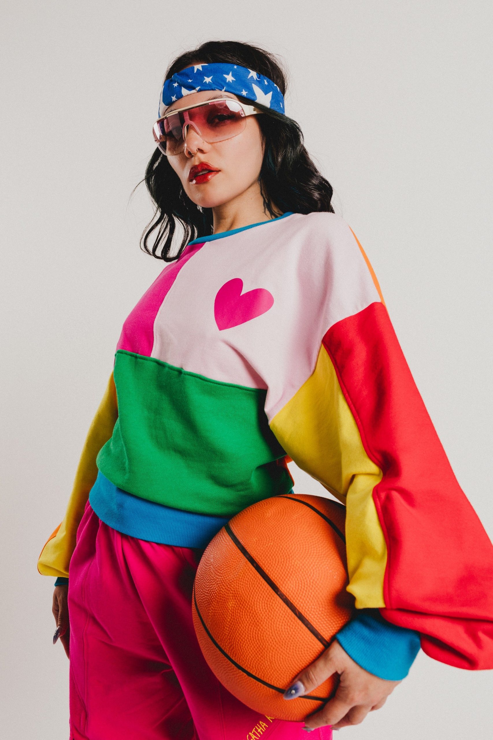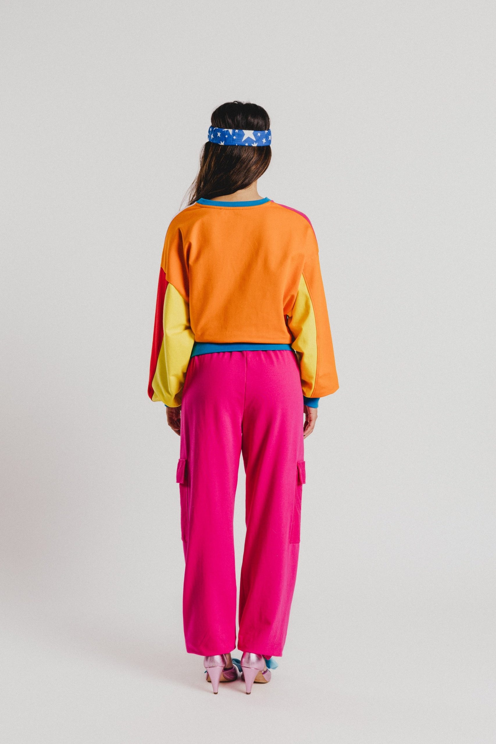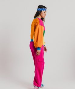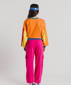 Multi-colored crew-neck sweatshirt with long sleeves. Regular fit. Sizes: 36 to 44. Model’s height: 1’80 cm. Photo size: 38. Machine wash max 30°C. Do not bleach. Do not tumble dry. Iron max 110°C. Composition: 96% COTTON AND 4% ELASTANE.