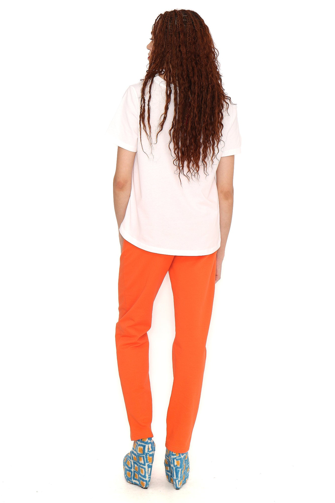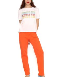White crew-neck T-shirt with short sleeves and our signature print in a variety of colors. The hem is rounded and the back is slightly longer. Regular fit. Sizes: 36 to 44. Machine wash at a maximum temperature of 30°C. Do not bleach. Do not tumble dry. Iron at a maximum temperature of 100% cotton.